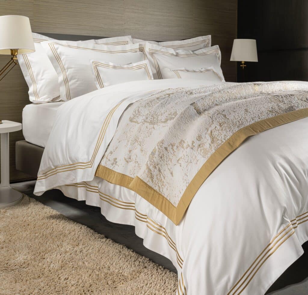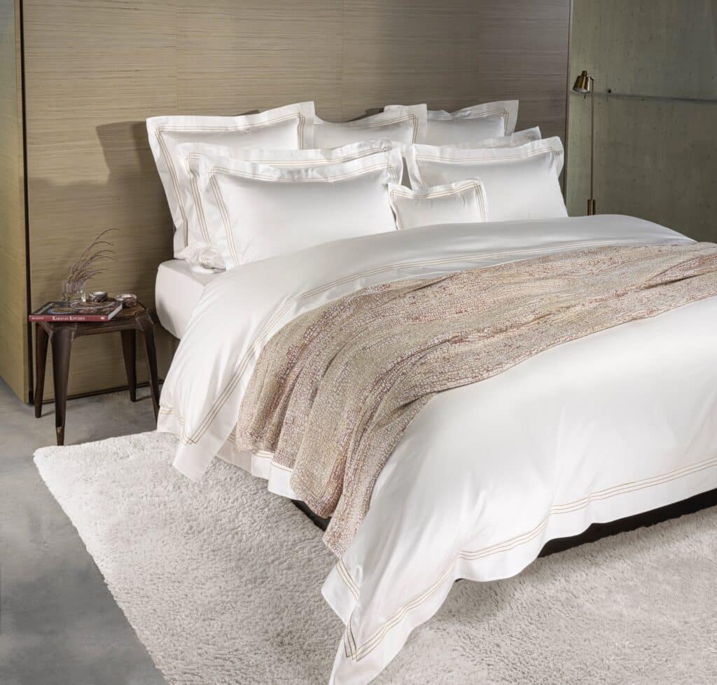Celso de Lemos Roowa behoort tot de exclusieve bedlinnen-collectie van Celso de Lemos. Het dekbedovertrek wordt vervaardigd uit zorgvuldig geselecteerde, fijne katoengarens met een zijdezachte touch. De subtiele glans, rijke kleuren en elegante weefstructuur zorgen voor een hotelwaardige uitstraling in de slaapkamer.