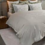 Celso de Lemos Trianon behoort tot de exclusieve bedlinnen-collectie van Celso de Lemos. Het dekbedovertrek wordt vervaardigd uit zorgvuldig geselecteerde, fijne katoengarens met een zijdezachte touch. De subtiele glans, rijke kleuren en elegante weefstructuur zorgen voor een hotelwaardige uitstraling in de slaapkamer. Dankzij de hoogwaardige materialen en ambachtelijke productie is Trianon duurzaam, huidvriendelijk en comfortabel in elk seizoen. Perfect te combineren met bijpassende lakens en kussenslopen uit dezelfde collectie.